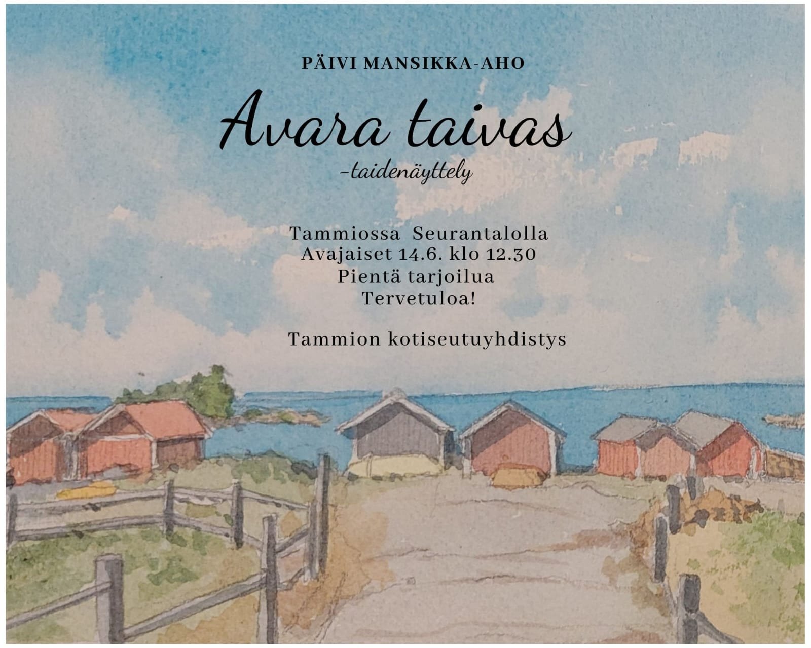 Tammiossa on muodostunut jo perinteeksi pitää kesäisin taidenäyttely Seurantalolla. Tänä vuonna 2025 on esillä Päivi Mansikka-ahon teoksia näyttelyssä ”Avara taivas”. Esillä on taiteilijan tuotantoa erilaisilla tekniikoilla, kuten Tammio aiheisia akvarellejä, akryyliteoksia ja kansainvälistäkin mainetta kerännyttä grafiikkaa.